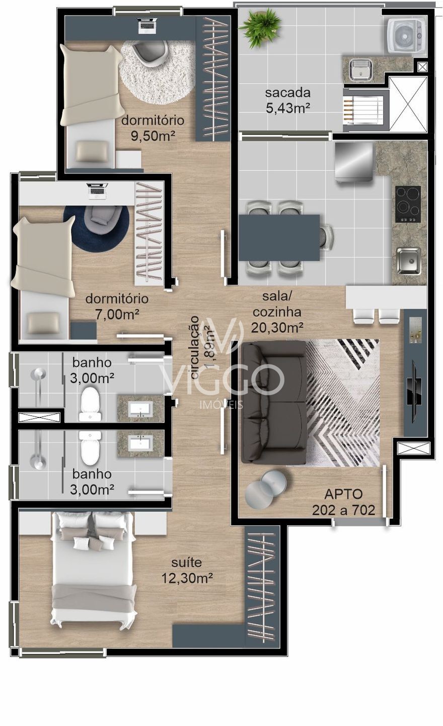 3 Dorm. | 1 Suíte(s) | 1 Box / Vaga(s)