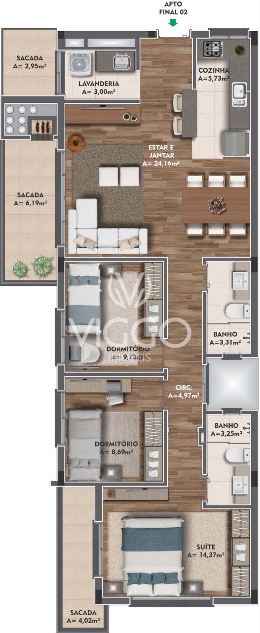 3 Dorm. | 1 Suíte(s) | 2 Box / Vaga(s)