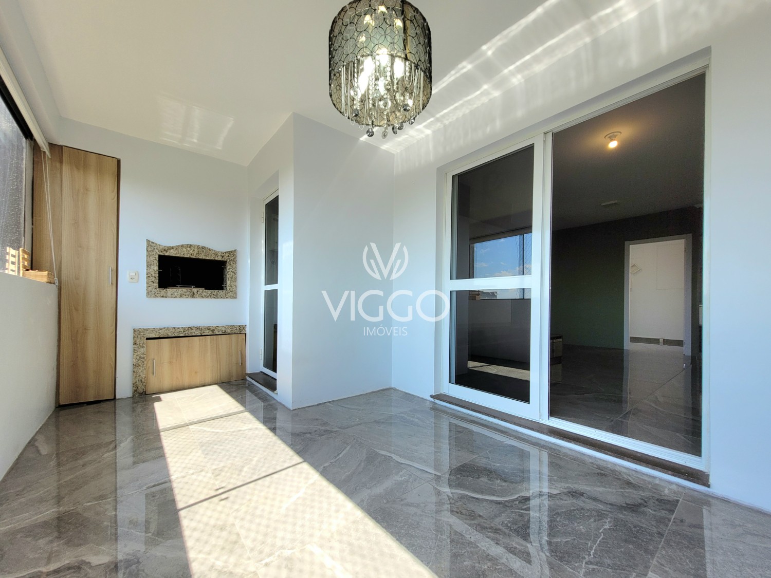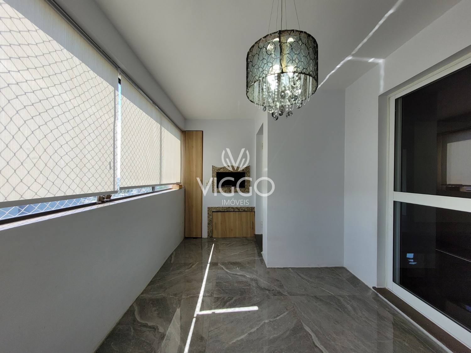 Ampla sacada fechada com churrasqueira;